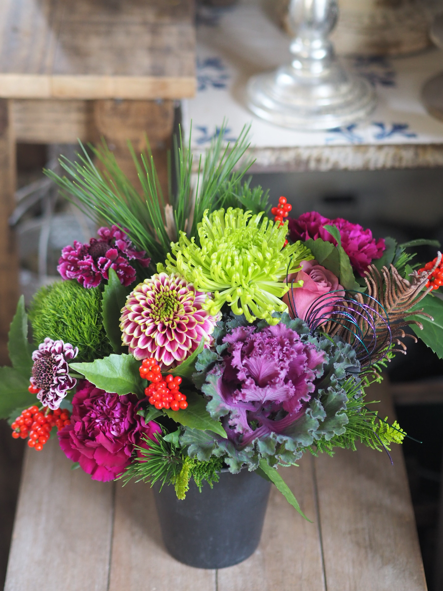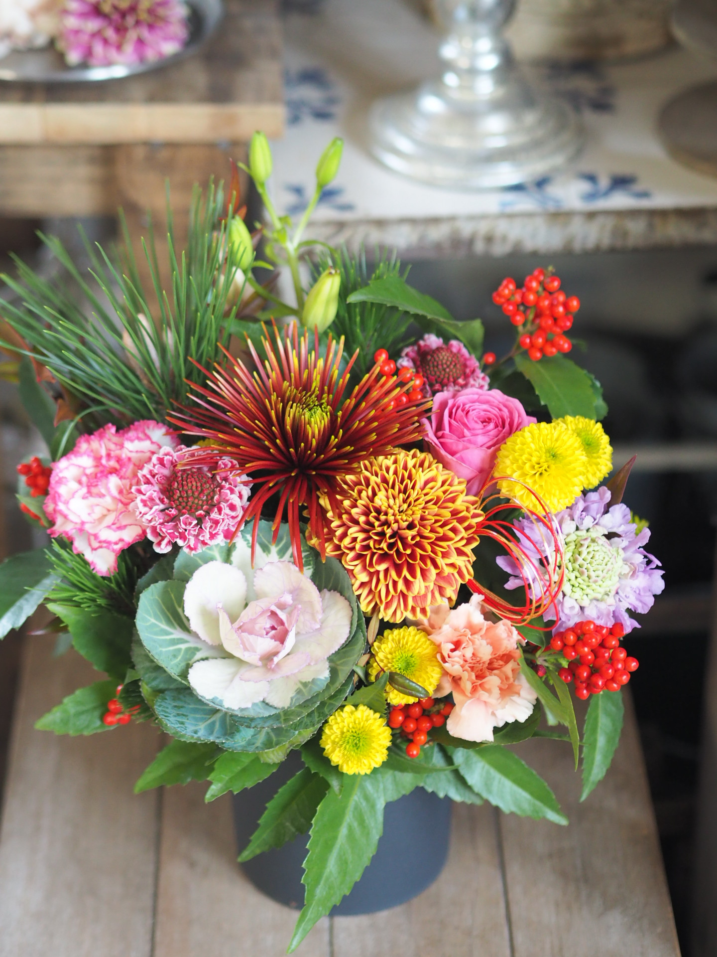 ・仕入れにより器や花材の種類等が変わりますのでご了承ください。見本写真はお花の雰囲気の参考としてご覧ください。