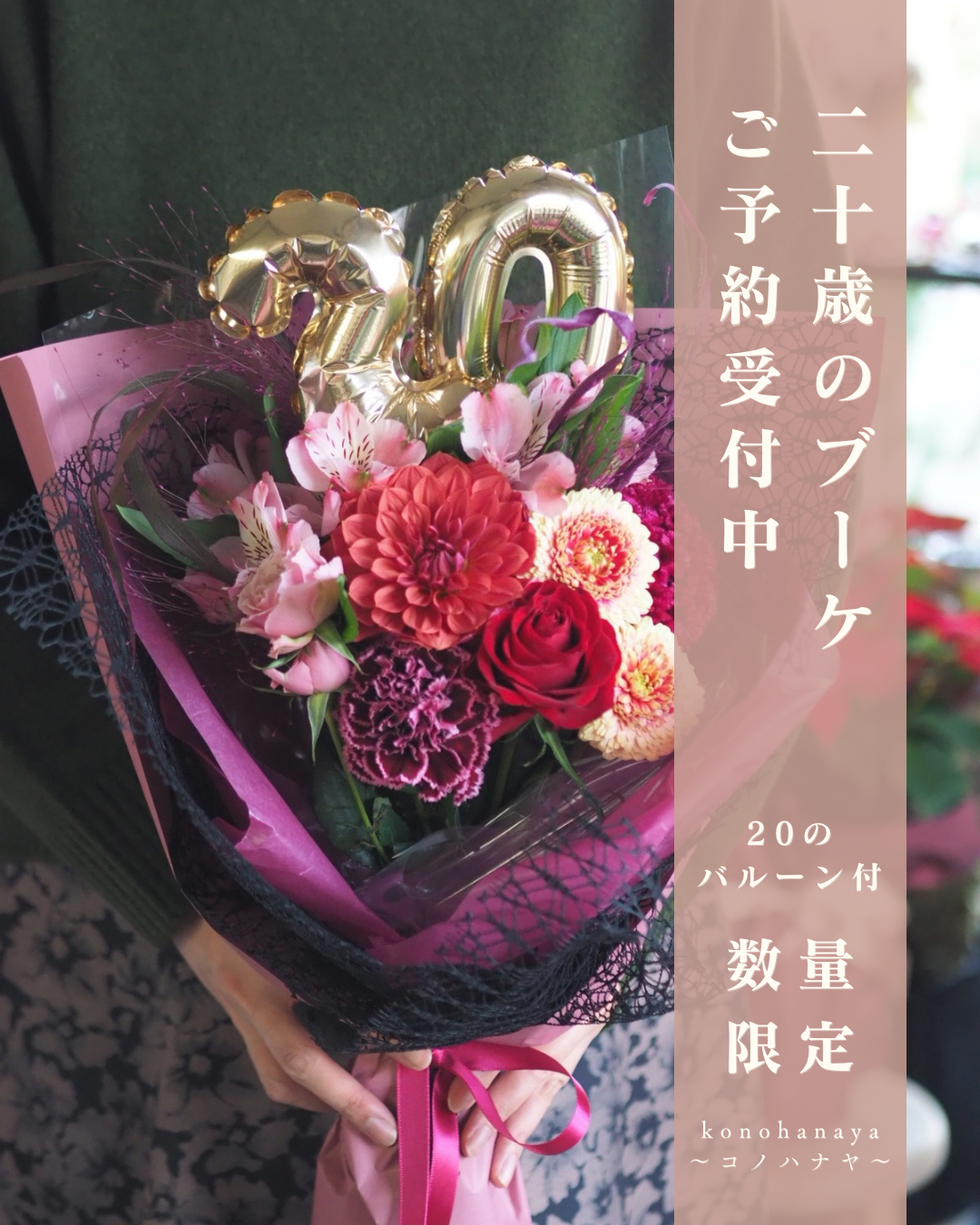 20をモチーフにしたバルーンを使ったお祝いのブーケです。
